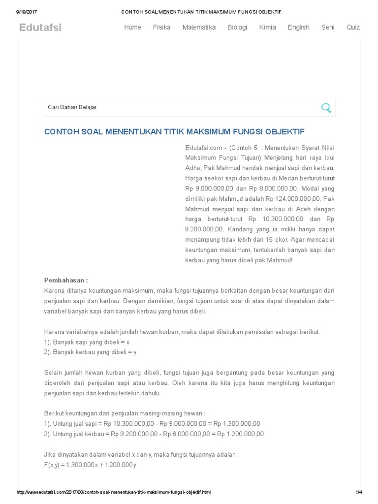 Bentuk umum fungsi objektif dari suatu model Jawaban: E.