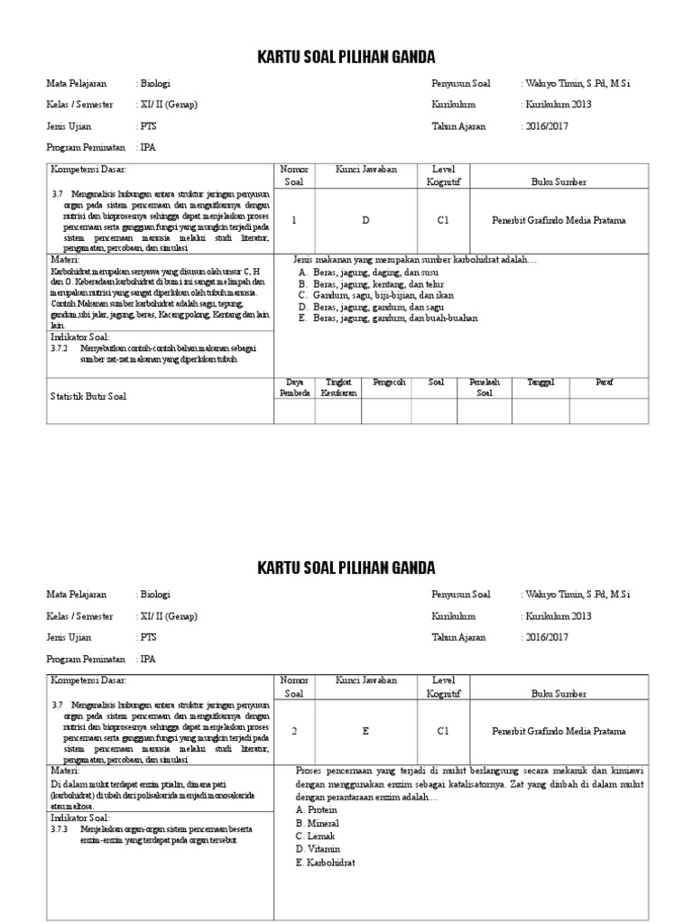 Kartu Soal Pilihan Ganda