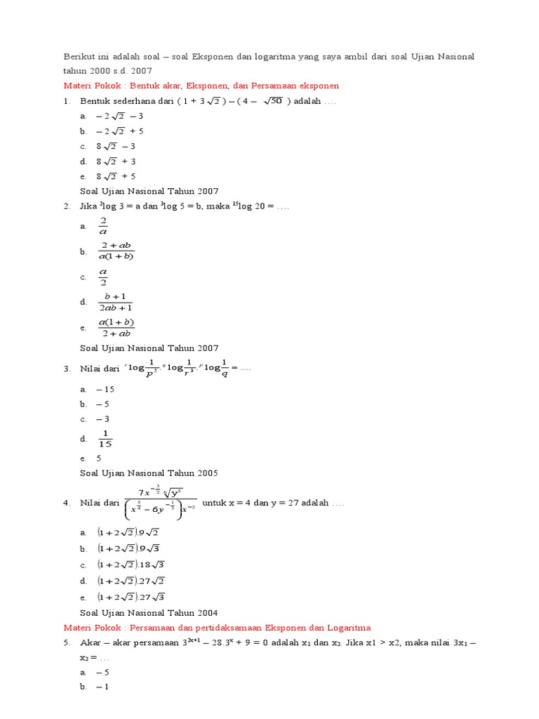 Contoh Soal Eksponen Kelas 10 Dan Pembahasannya Pdf ...